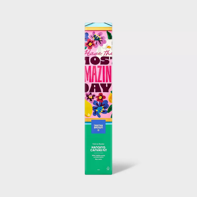 Create a vibrant and inspiring wall hanging with the Hanging Canvas Kit by Tabitha Brown. This all-in-one paint-by-number set includes 13 acrylic paint pens, a pre-printed canvas with numbered outlines, an instruction sheet, and materials to assemble a wooden frame. Designed for relaxation and creativity, it offers a rewarding artistic experience perfect for a weekend project or a thoughtful gift. Infused with Tabitha Brown’s signature warmth and colorful style, this kit helps you craft a cheerful piece that brightens any space.